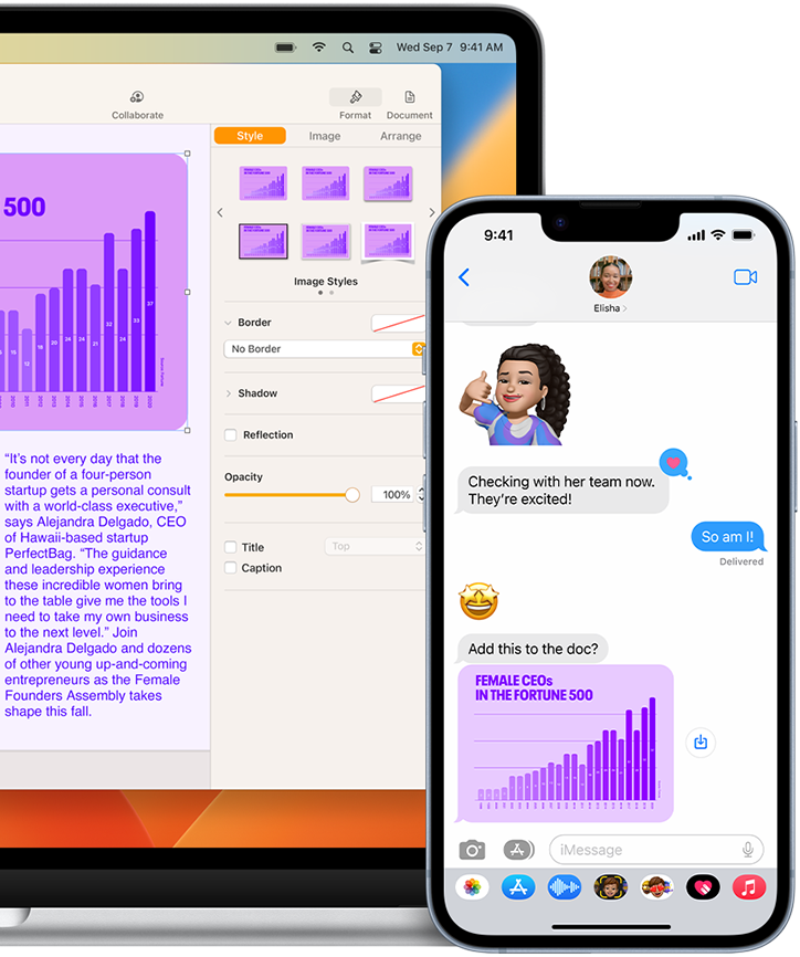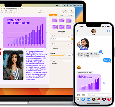 Copy and paste, sync edits and continue conversations between Mac and iPhone.◊